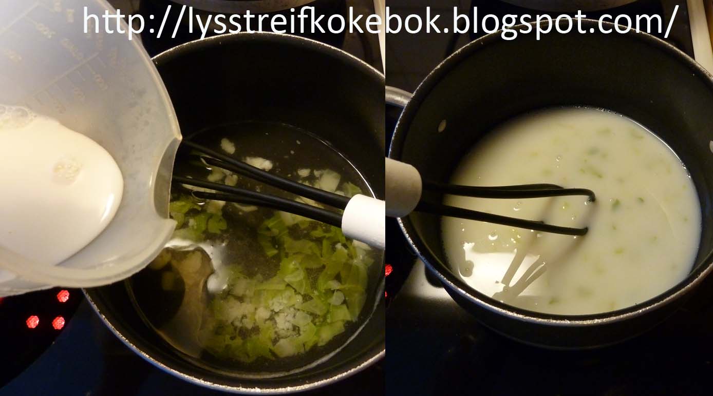 Krydre med salt, muskatnøtt og litt pepper.